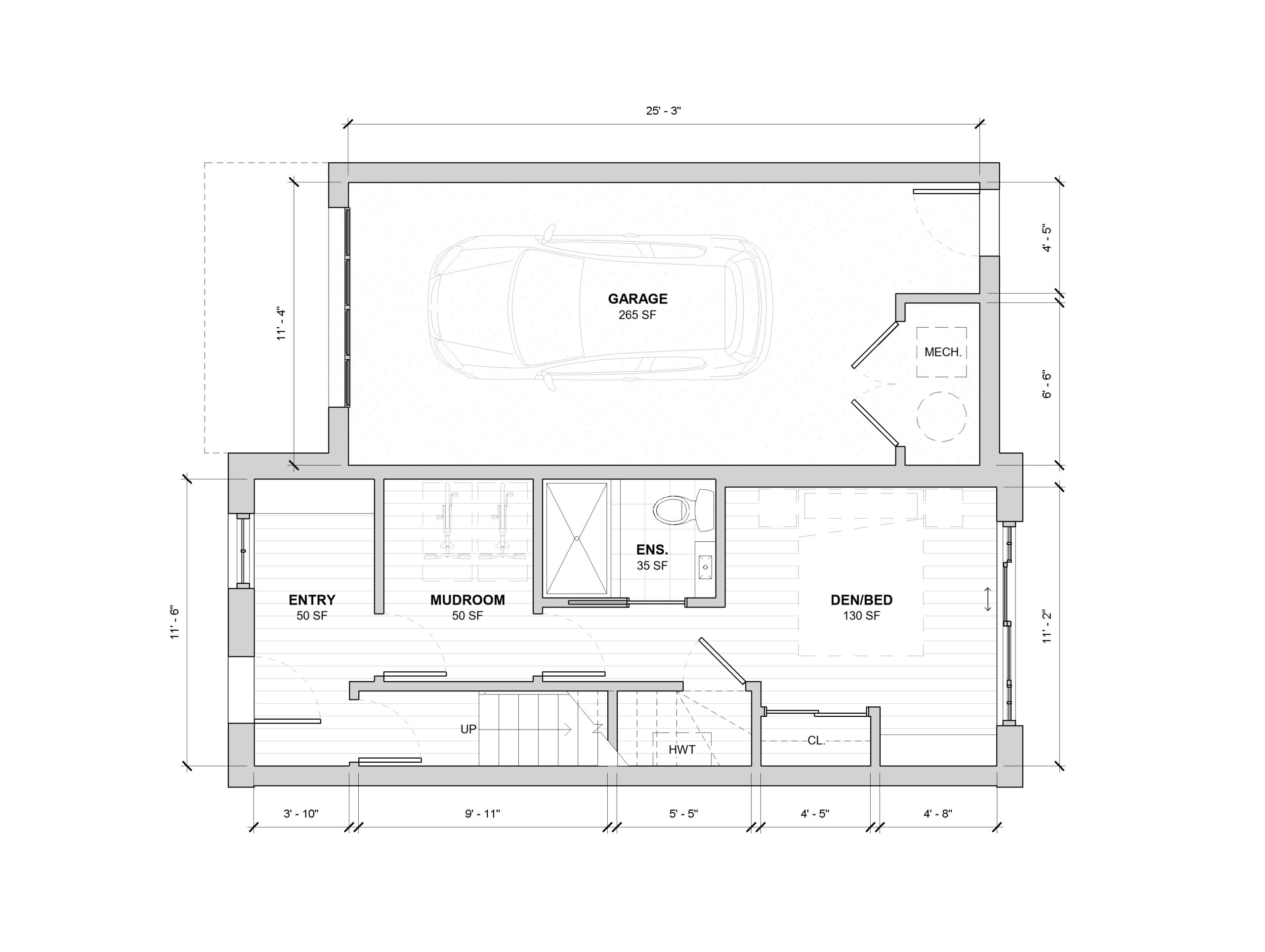 The owners of this property in the heart of Cabbagetown approached Lanescape looking to create housing flexibility, considering the laneway suite to house long-term tenants or to function as their personal pied-a-terre. Our team began by devising several schemes conducive to a variety of living scenarios while considering the physical impacts and financial opportunities of each. These options evolved into a 1,470 square foot, 2-storey design offering a luxurious 1-bedroom suite at the upper level, with a self contained guest suite and garage below. The flexible floor plan prioritizes a large comfortable living space over a compact multi-bedroom unit and allows the lower level suite to function as an extension of the space above, main house, or as an intermittent accommodation for the homeowner.