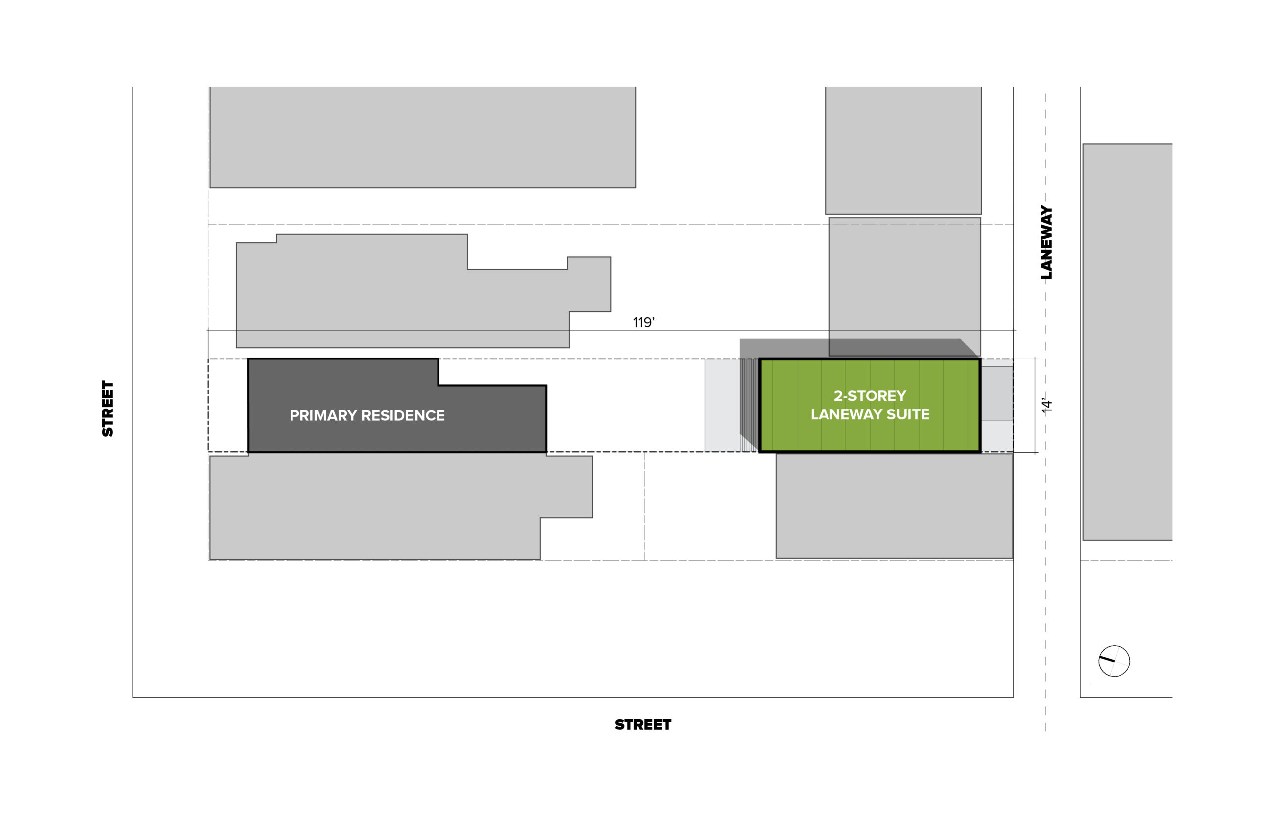 The owners of this deep, narrow property sought to leverage their laneway to generate rental income and provide long-term housing flexibility for their young family. Our team worked to develop an as-of-right structure to optimize rental return through thoughtful design, while avoiding the need for approvals at the Committee of Adjustment.
